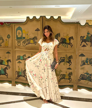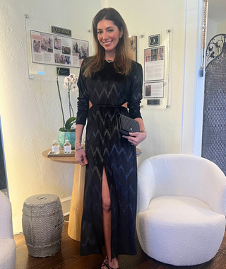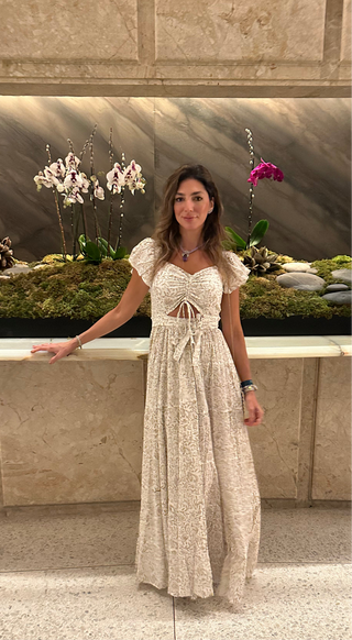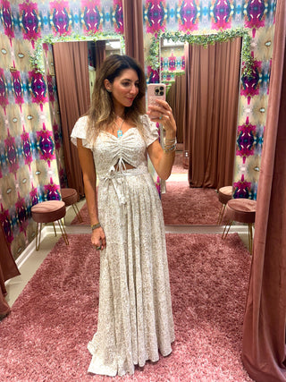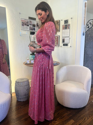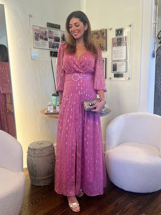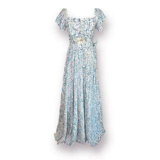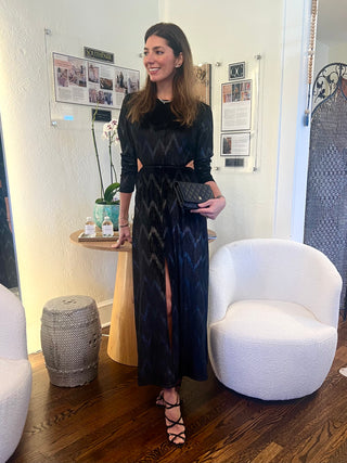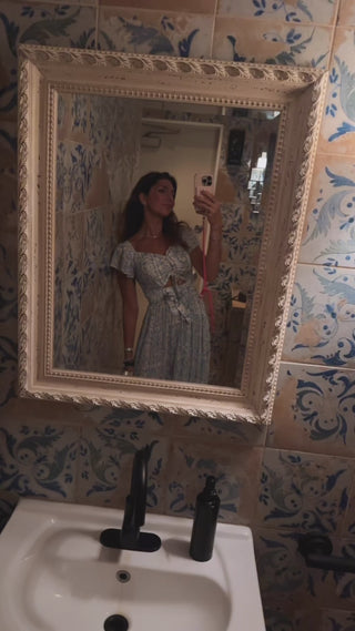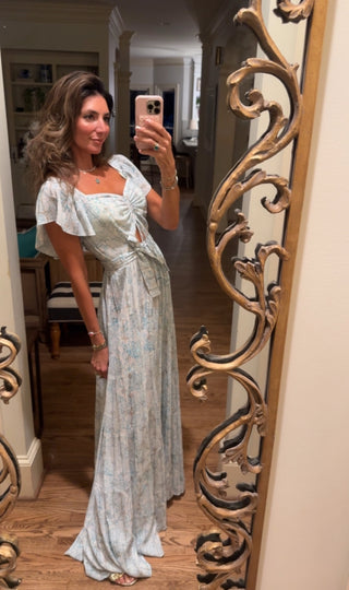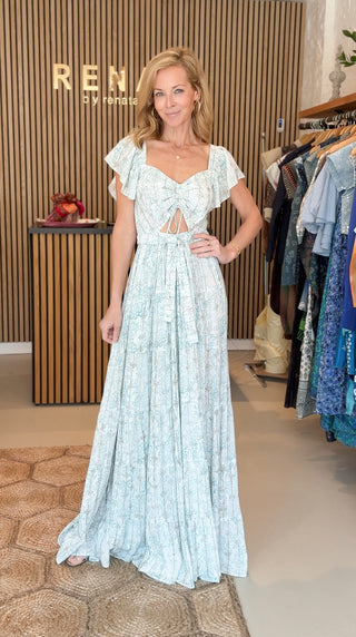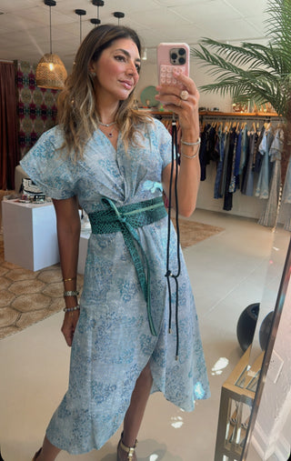 San Gabriel Belted, Front Slit, Light Textured Bluish Dress