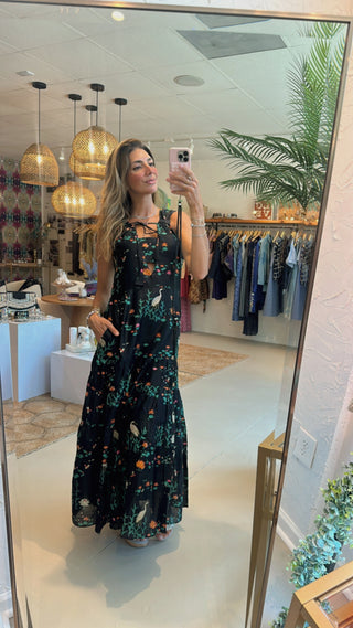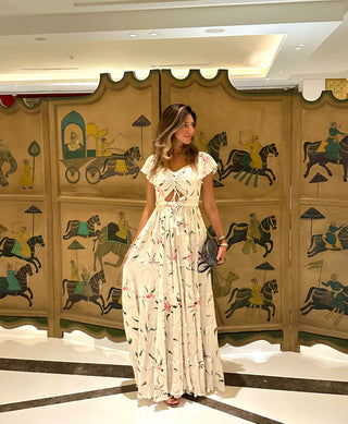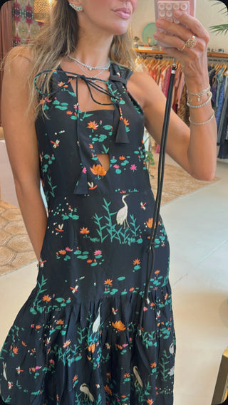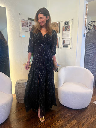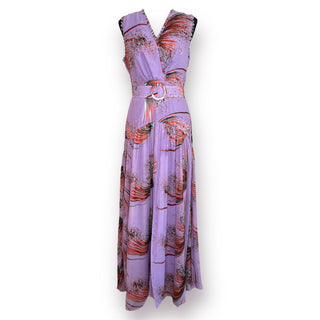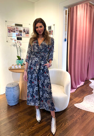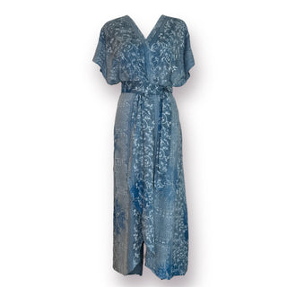 San Diego Belted, Front Slit, Artistically Patterned Denim Dress