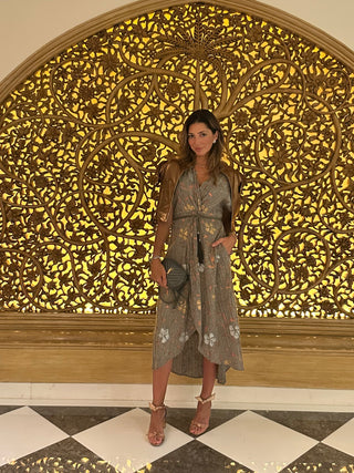 Horoscope Wrap, Buttoned, Front Slit, Vcut Fuchsia Dress MF