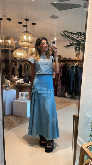 Littleton Pleats, Front Slit Mirrored Greenish Purple Skirt