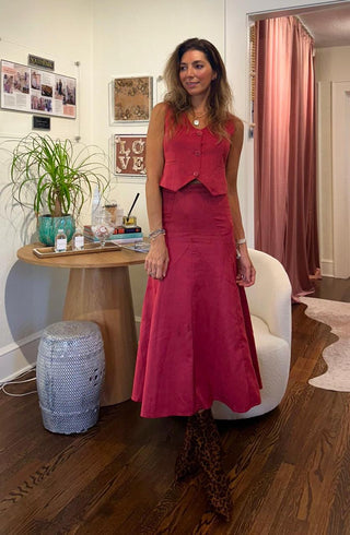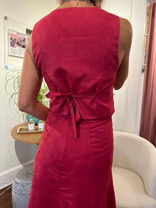 Ansonia Vcut, Buttons, Front Slit, Layered, Velvet Burgundy Dress MF