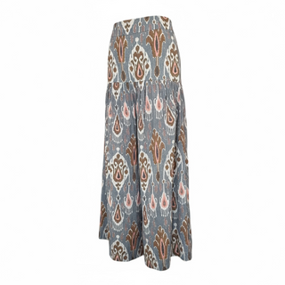 Lebanon Pleats, Front Slit, Lightly Sparking Textured Blue-Tanned Skirt
