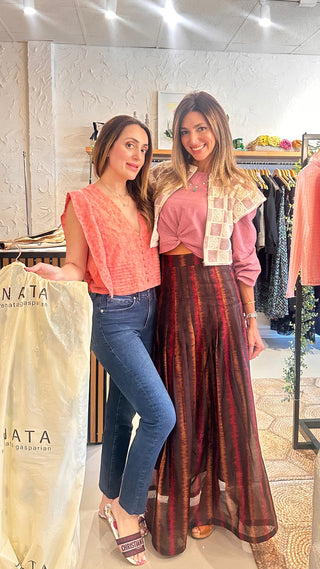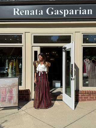 Together we design products that define a style and a signature of who wears them. Each piece allows you to experience the allure of its fabrics, embellishments and its distinctive details, creating a unique look when worn.These items, which we have specially sourced fabrics and textures for, are part of a set of items created for the Collaboration developed with Madelyn's Fund co-founder, Rachel Lee.